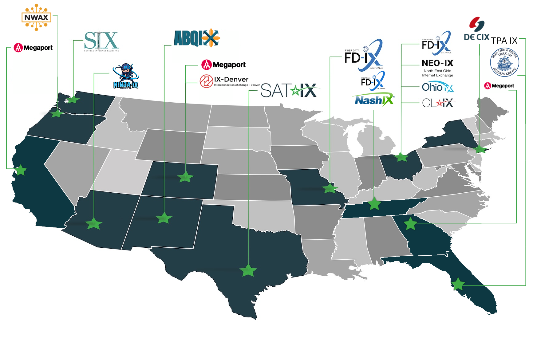 H5 Data Centers provides seamless access to a wide range of Internet exchanges across the United States, enabling organizations to efficiently connect, peer, and scale their networks